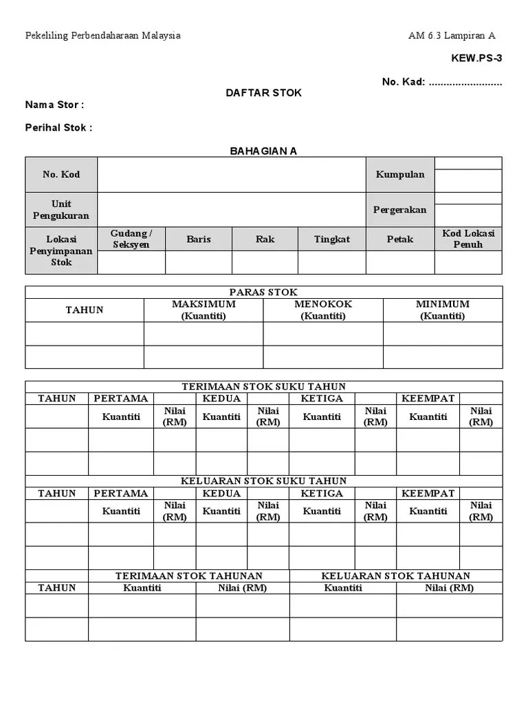 Kew.ps-3 Daftar Stok Bahagian A : Lampiran 10 Kad Kawalan Stok Kew Ps 3 Pdf. Nama stok berdasarkan pusat rujukan maklumat sppa. Borang bahagian amanah, penyelidikan, penjanaan & program kerjasama borang bahagian gaji, pinjaman staf & cuti belajar borang bahagian akaun, pelaburan, penerimaan & sistem Nama stor yang telah ditetapkan oleh ketua jabatan. Penjelasan terperinci maklumat daftar stok no. Bilangan kad bermula dengan 1 nama stor :